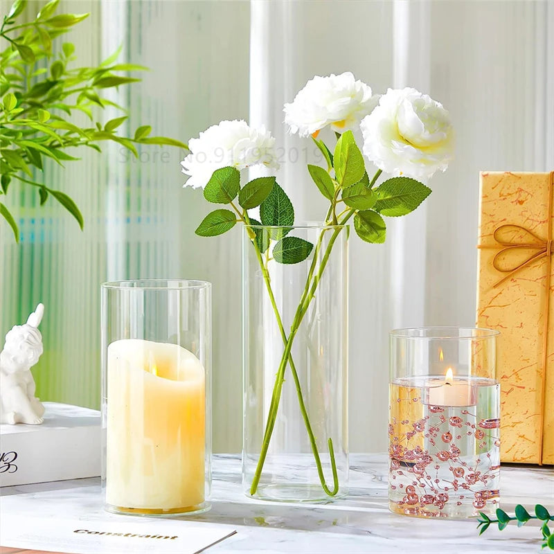 Clear Glass Cylinder Vases Floating Candles Holders Clear Cylinder Flower Vases Clear Glass Vases Table Centerpieces Vases