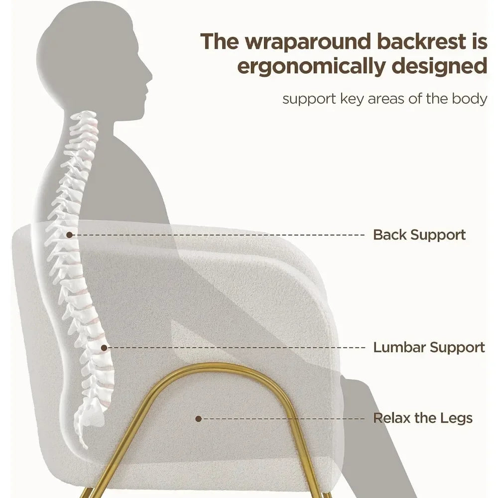 Accent Chair Set of 2, Armchair Set, Side Chairs for Living Room, Boucle Fabric Vanity Chairs with Goldoom Office g Nook, Ivory