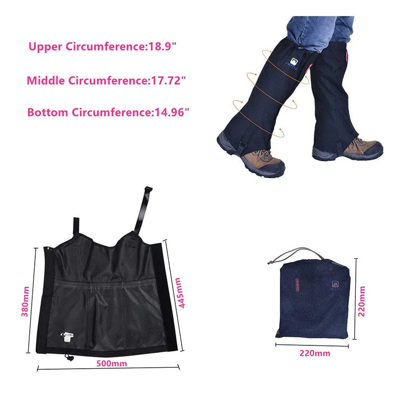 * The Outdoor Hiking Camping Gaiter Cover are made of 600D anti-tear durable oxford cloth, waterproof and breathable to protect snow, rain against wetting shoes.