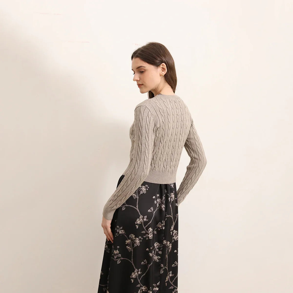 AP Women 2025 Autumn New Floral Printing Satin Dress Lady Elegant Sleeveless Clothing Casual Cable Sweater