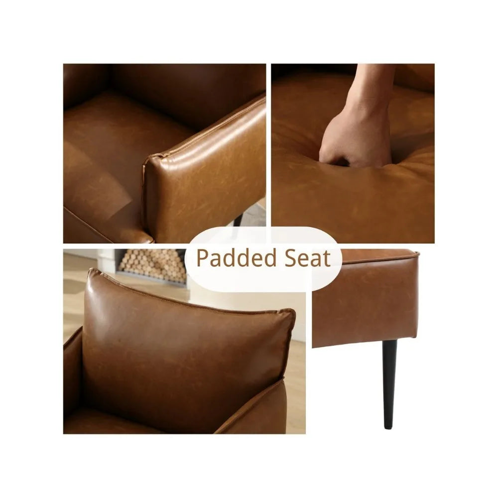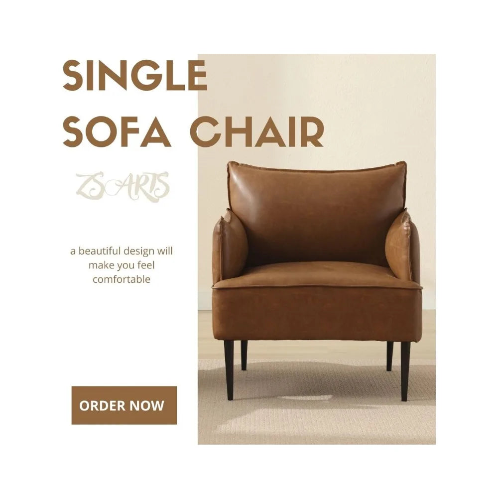 - 【Modern Design】 Upholstered single sofa chair is made from premium PU leather for a sleek and luxurious look in a brown color, adding a pop of warmth and character to your space.