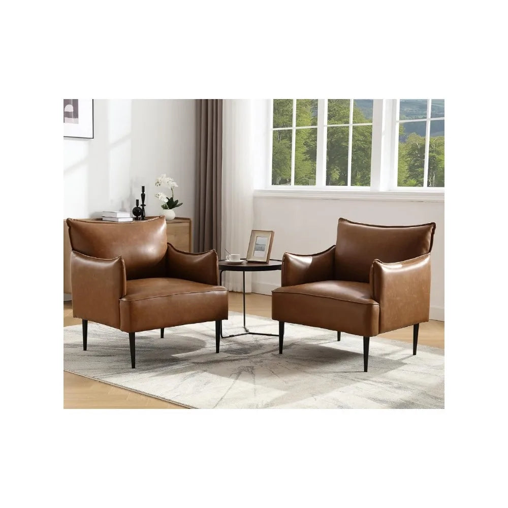 Brown Leather Accent Chairs Set of 2, Modern Club Chairs Single Sofa for Living Room Upholstered Armchair Side Chair with Black