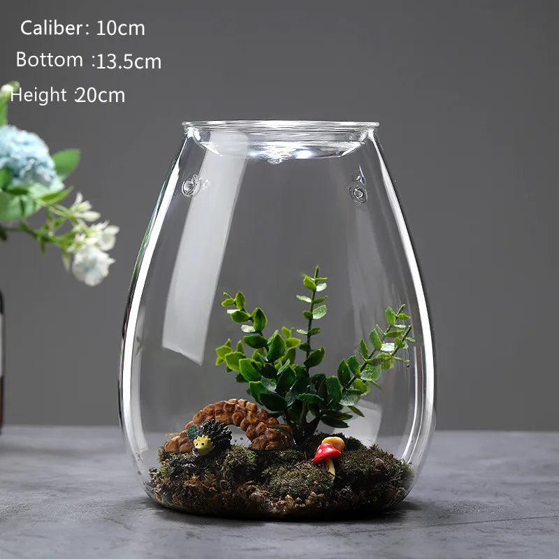 Creative Glass Cover Glass Bottle Moss Vase Hydroponic Fleshy Micro Landscape Glass Terrarium Bonsai Home Decor