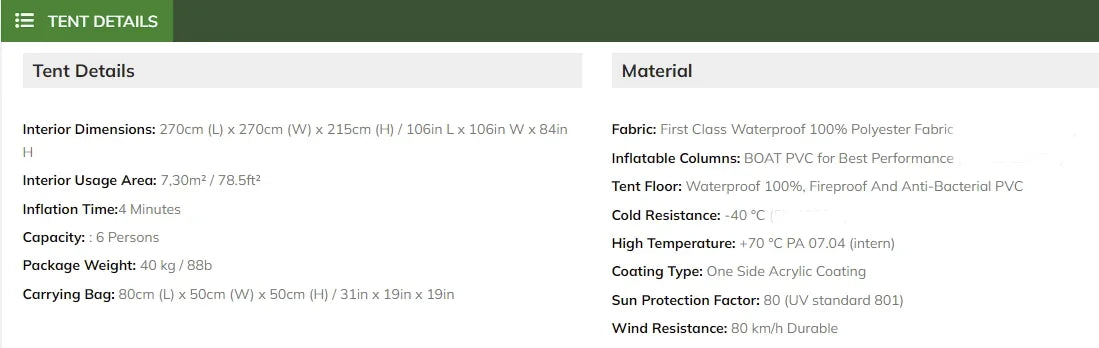 Size: 270cm (L) x 270cm (W) x 215cm (H) / 106in L x 106in W x 84in H