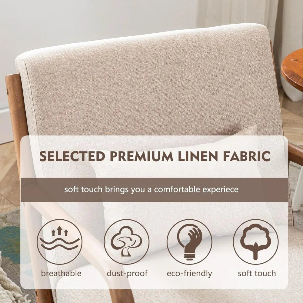 - PREMIUM MATERIAL: Solid nature wood frame provides a sturdy structure for long-lasting durability. The cushions are made of high-density sponge, soft and comfortable. Besides, the linen cover features a gentle texture and friendly touch. This bedroom chair is sturdy and environmentally friendly