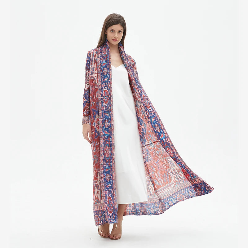 Pleats Pleated Abaya Long Printed Jacket Trench Windbreaker Evening Gown Gown 2024 Autumn New Loose Extended Coat Women Clothing