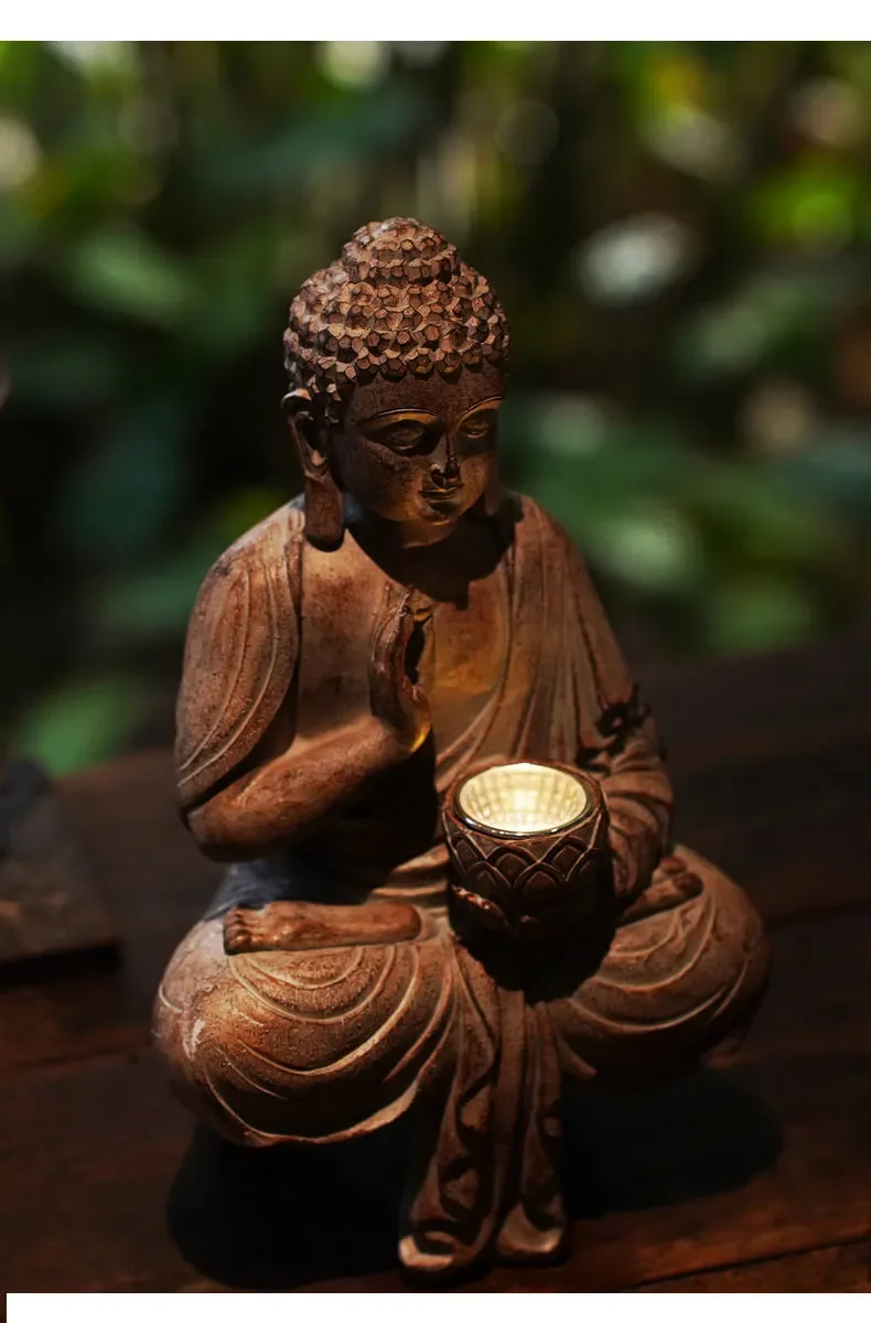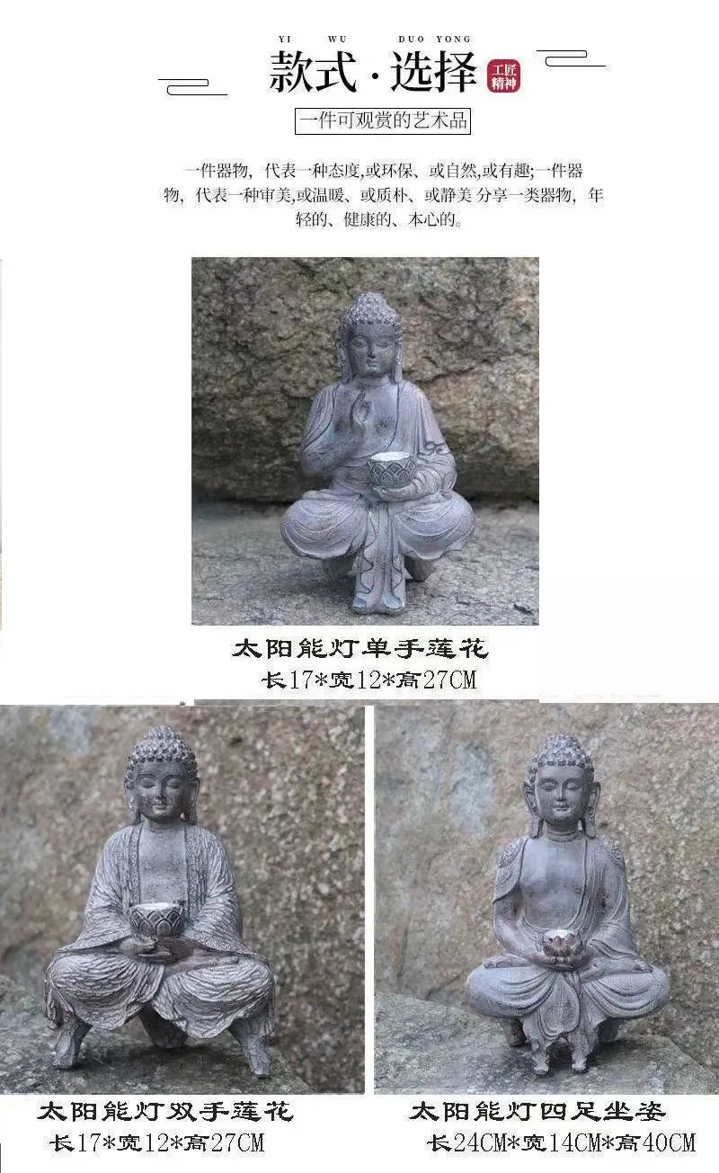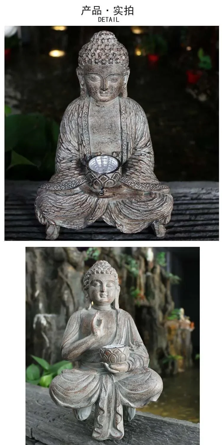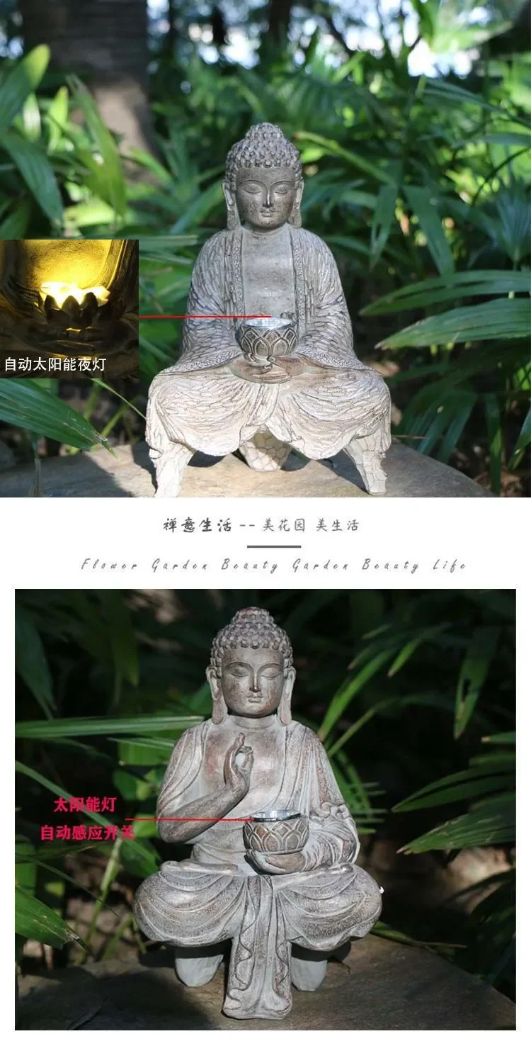Solar Lights Decorative Buddha Statue Outdoor Patio Garden New Chinese Buddha Statue Zen Living Room Office PorchDecorativeResin