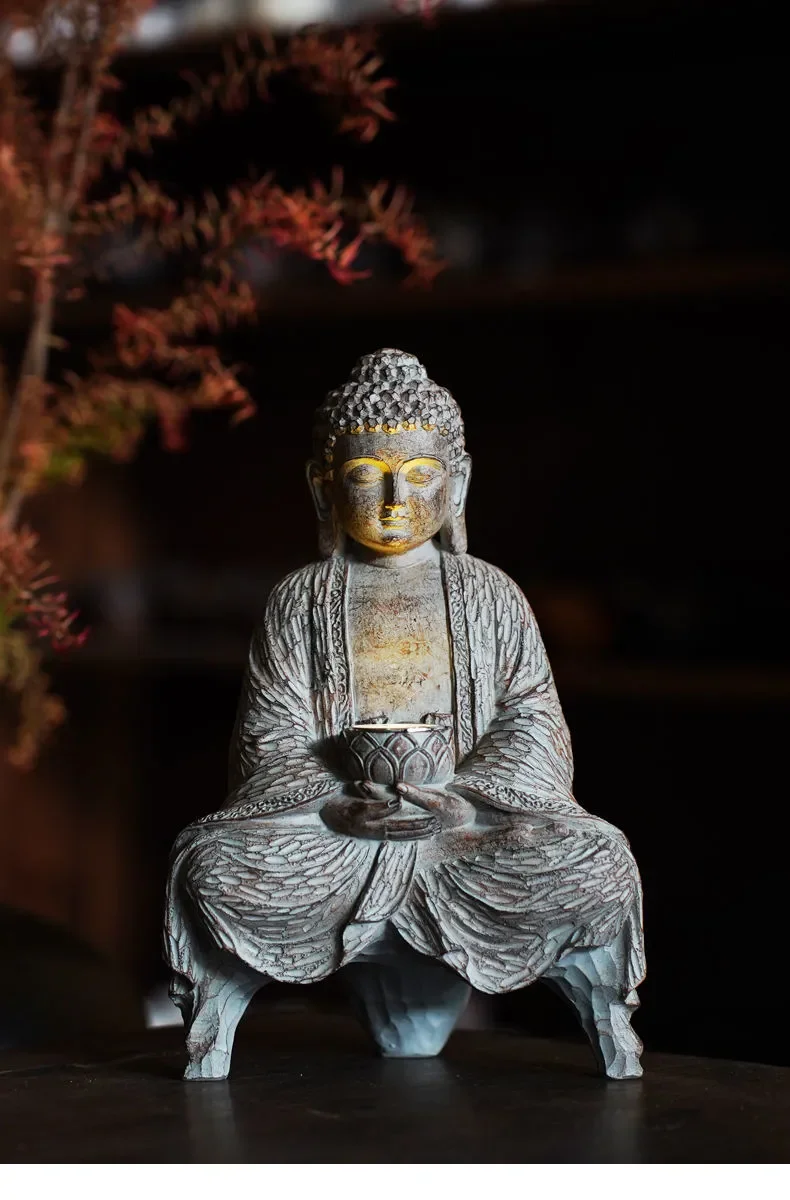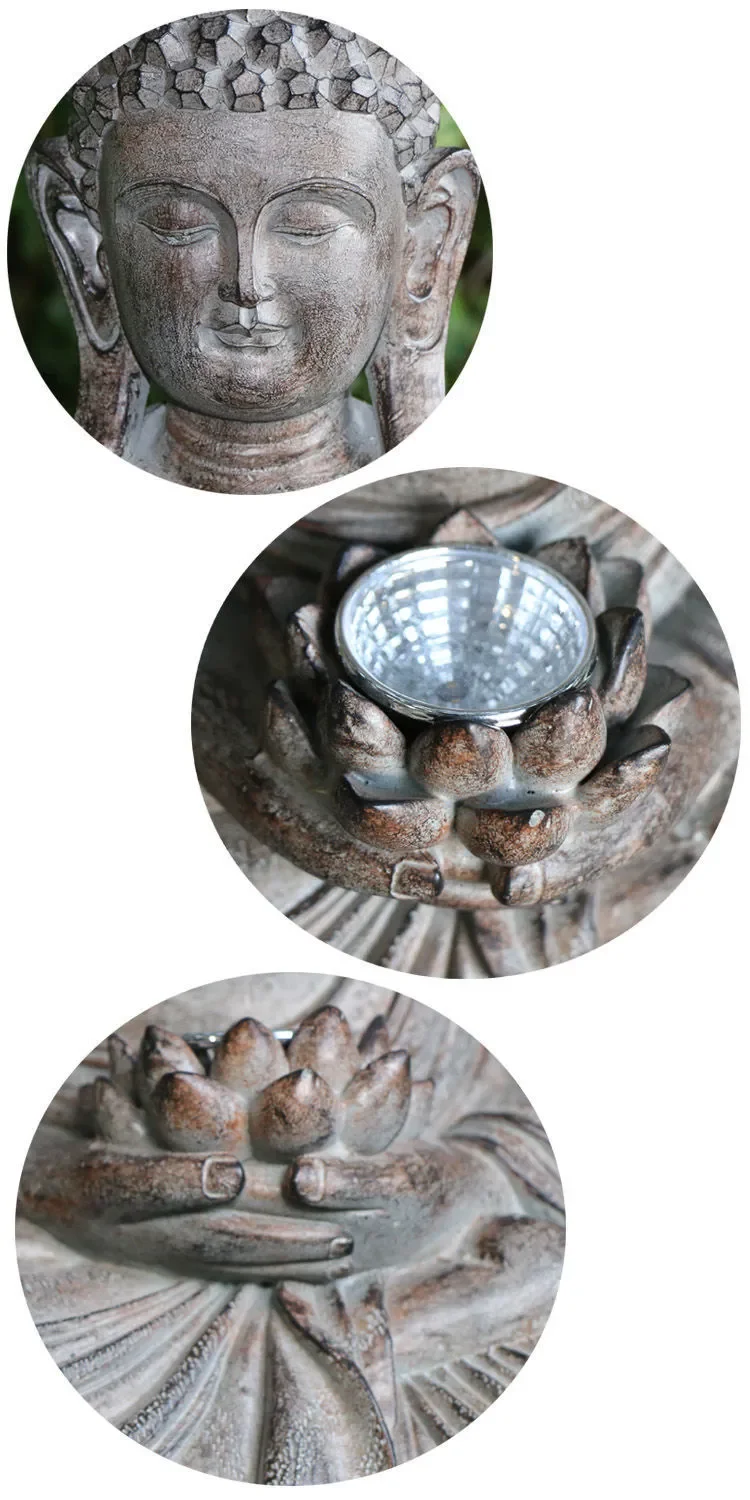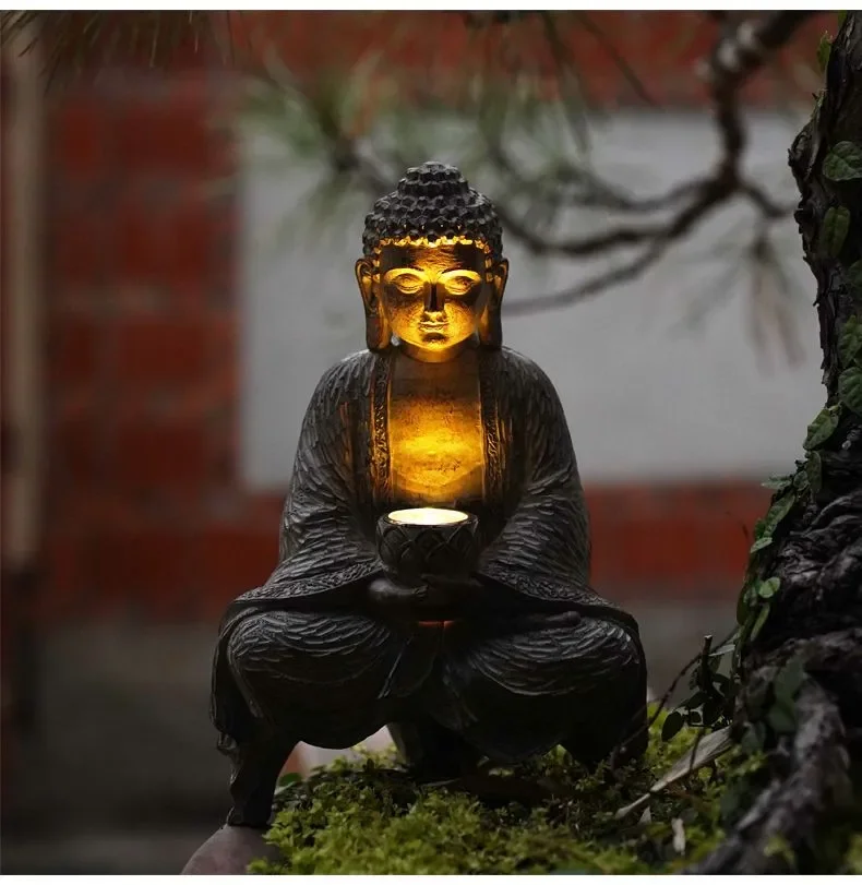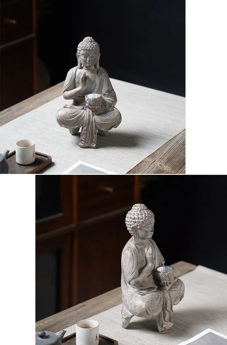 Solar Lights Decorative Buddha Statue Outdoor Patio Garden New Chinese Buddha Statue Zen Living Room Office PorchDecorativeResin