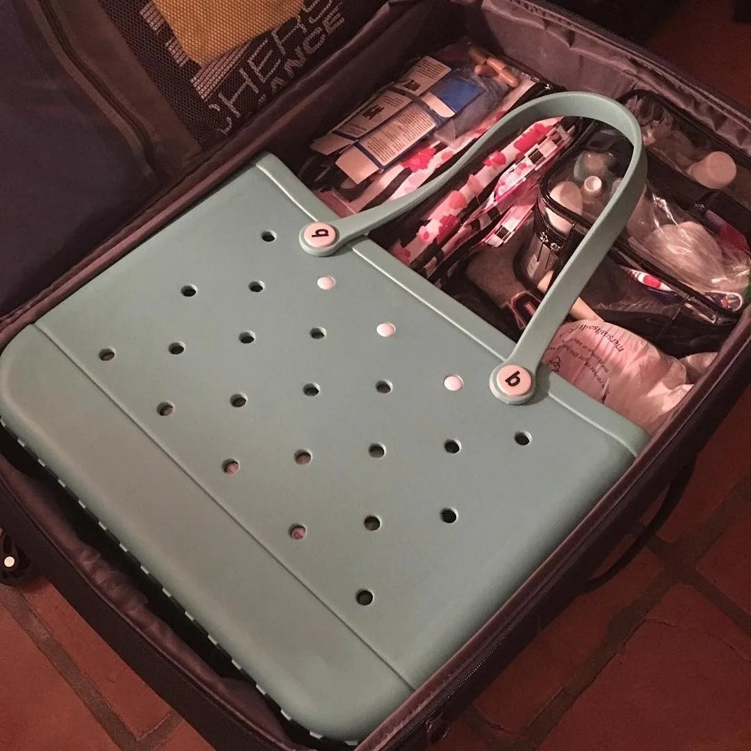 Solid Fashion Hole Durable Waterproof Beach Bag Fashion Rubber Handbag Beach Boat Swimming Sports Shopping Portable Eva Handbag