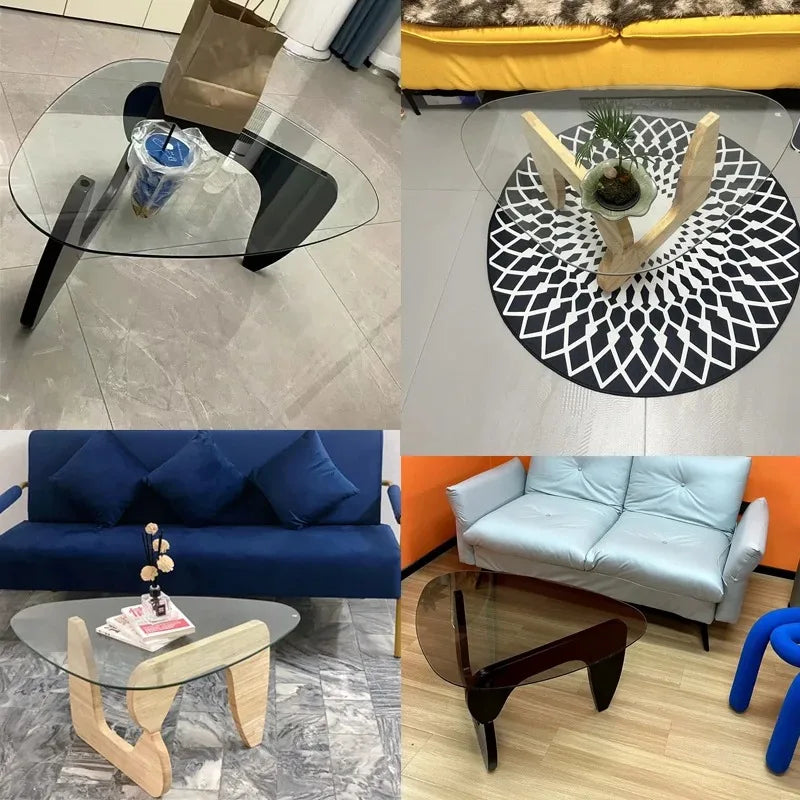 Triangle Coffee Table Modern Coffee Table Wood Base Glass top,Glass Coffee Table,Oval Small Center Table For Living Room