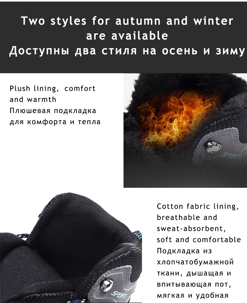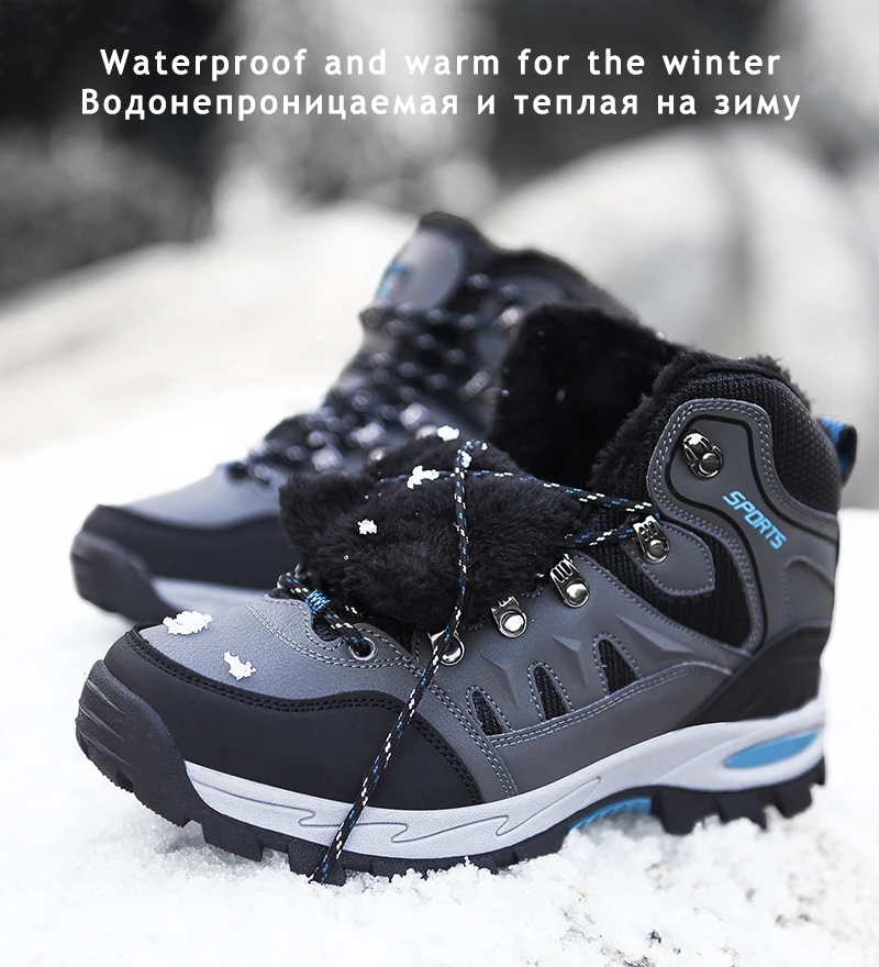 Warm Men Winter Boots With Fur & Autumn Outdoor Hiking Boots Man Sneakers Trekking Shoes For Unisex Non-Slip Snow Boots